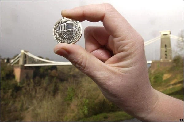 17岁时,布鲁内尔参与设计了世界上第一个水下隧道,即泰晤士隧道。1829年——1831年,布鲁内尔第一次独立设计了建于1864年的大桥。1833年,作为西线铁路建设的工程师,他参与了铁路以及此铁路线上隧道,桥梁和高架桥的建设。为此,他赢得了很高的荣誉。他的最后一件,也是最伟大的一项铁路作品是康沃尔铁路上的阿尔伯特桥。布鲁内尔还以建造汽船闻名,他共设计了三艘大汽船。他的关于建立从伦敦到布里斯托尔至其他海港甚至美国的交通网络的构想是很超前的。上图手中的两英镑硬币,其上戴礼帽者即布鲁内尔。