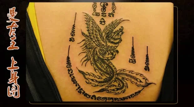 据泰国朋友介绍,文身这种习俗在泰国可谓历史悠久,在曼谷王朝五世王时期,它就已经成为泰国社会中一种非常普通的习俗了。在泰国,少年在行“成人礼”时,必须要文身。在很多泰国人看来,文身的男人能够获得神力的“保佑”,可以消灾免祸,百毒不侵。由于文身的目的意义不同,文身的部位也就略有差异。泰南地区的男子文身部位大多为胸、背、肩、腿,而泰北地区的男子文身部位多为膝盖以下,腰部以上。文身的图案则相差无多。