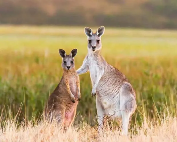 袋鼠和鸸鹋在离考拉不远的另一个圈起来的地方。这两种动物可是在澳洲国徽上的,澳洲50分的硬币上也有它们,可见澳洲人对它们的重视程度。见到它们只有一个词来形容我,兴奋,非常兴奋。里面的袋鼠品种估计有4种以上,因为看着都不太一样。还看见了小袋鼠从妈妈的袋子里露出小脑袋,好奇地望着外面的世界。看见有人从护栏下钻了进去和袋鼠照相,我也大喜,一样钻进去,和袋鼠们来个亲密接触。它们的脾气看来都非常温顺,太温顺了,摸摸头摸摸嘴都没有什么,我恨不得能抱一只回去当宠物养。和袋鼠在一起的是鸸鹋,澳洲的国鸟,两种能在一起生活的动物,关于鸸鹋的了解不是很多,看着体型很庞大,和鸵鸟差不多了,号称是世界第二大的鸟,善于奔跑,长得也和鸵鸟差不多,区别是鸸鹋的毛多些,而鸵鸟好像是秃顶。鸸鹋的性情也很温柔,若不激怒不会发起攻击。我发现澳洲的鸟儿都很大胆,不管是什么鸟。也许在这片土地上,它们与人类和平共处的时间很长了,人类在它们看来已经是朋友了,其实,它们才是这里的主人,人只是客人而已。