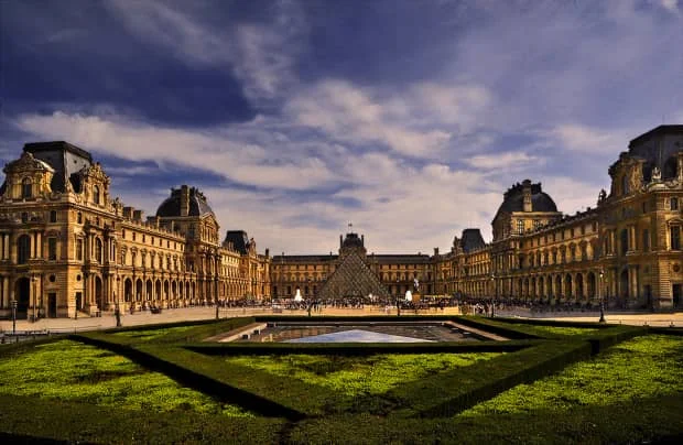 卢浮宫(法语:Musée du Louvre)位于法国巴黎市中心的塞纳河北岸,位居世界四大博物馆之首。卢浮宫始建于1204年,原是法国的王宫,居住过50位法国国王和王后,是法国文艺复兴时期最珍贵的建筑物之一,以收藏丰富的古典绘画和雕刻而闻名于世。现为卢浮宫博物馆,历经800多年扩建重修达到今天的规模,占地约198公顷,分新老两部分,宫前的金字塔形玻璃入口,占地面积为24公顷,是华人建筑大师贝聿铭设计的。1793年8月10日,卢浮宫艺术馆正式对外开放,成为一个博物馆。卢浮宫已成为世界著名的艺术殿堂,最大的艺术宝库之一,是举世瞩目的万宝之宫。