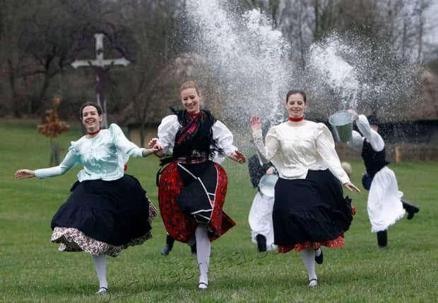 提起匈牙利人的复活节,那又一番特殊别致的迎春方式,那就是水泼美女迎春了。复活节这一天,在匈牙利最有意思的地方恐怕是“鸦石村”了。这是个古老的山区小村庄,位于布达佩斯东北方向约120公里处,靠近斯洛伐克边界。这个村庄已有200多年的历史,因较好地保留了当年古朴的原貌,再加上小村庄山顶上还有一座有700多年历史的古城堡,因此,这个小村庄自然就成了远近闻名的旅游景点。复活节同时也是小村庄的民俗活动节,吸引了八方来客。