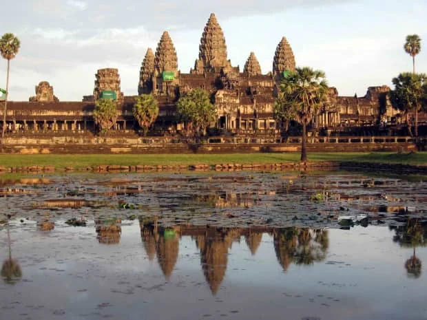 吴哥位于暹粒省境内,距首都金边约240公里,是柬埔寨民族的象征,被誉为东方四大奇迹之一。吴哥古迹现存600多处,分布在面积45平方公里的森林里。大吴哥和小吴哥是它的主要组成部分,其中有许多精美的佛塔以及众多的石刻浮雕,蔚为壮观。这些佛塔全部用巨大的石块垒砌而成,有些石块重达8吨以上。佛塔刻有各种形态的雕像,有的高达数米,生动逼真。1992年,联合国教科文组织世界遗产委员会把整个吴哥古迹列为世界文化遗产。