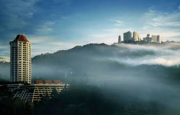 在马亚西亚采风中,让我最惊讶的就是去到云顶高原,这是一个很让人难以置信的地方,在一个二千多米的高山上竟然会建造了一个像未来城市一样的国度。里面的东西应有尽有,有一个室内游乐场,一个室外游乐场,而室内游乐场就像一个小城市一样,有卖衣服的,有卖鞋的等等,还有戏院,赌场,GAME场,一条小河,有船会环绕整个小城市,当然还有很多的餐厅,有旋转木马、摩天轮,而这些都是在室内的,我所住的第一世界酒店,只是大堂,就已经像一个客运站的候车室那么大,因为它那里足足有七千多间房,在这么高的山上,还住十三楼,整个楼就在云层的里面,很像仙境一样。