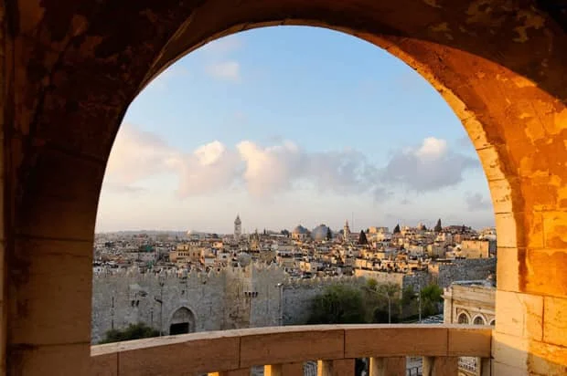 那天我抵达耶路撒冷正是黄昏,也正是这座城市一天当中最美之时。我入住的酒店距耶路撒冷古城仅百米之遥。推开窗户,天高,云淡,风轻,气爽。夕阳斜挂,晚霞从天边漫了过来,放眼望去,“满城尽带黄金甲”。古城用的石材很特别,一水儿米黄色,在夕阳折射下,金光灿烂。