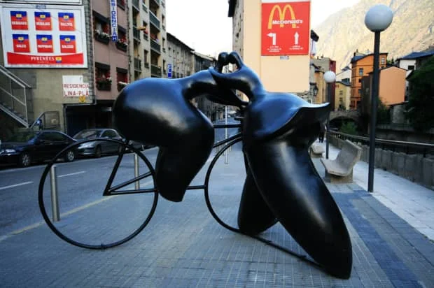 在游览中,我发现,国际化的东西来到安道尔之后便添加了几分地方特色,比如,安道尔的麦当劳的房子很特别,吸收了安道尔传统的建筑风格,用石头修筑的墙上嵌着麦当劳的显眼标志,仿佛在一幅古香古色的油画中涂抹了一道亮丽的现代彩妆。安道尔城本身就是一个令不同口味游客心满意足的地方。我徜徉在繁华的大街上,看着狭窄又弯曲的路两旁的时尚店铺,剩下的是就是纯粹的山和水,喷泉、牧场、遗留下来的罗马式建筑。