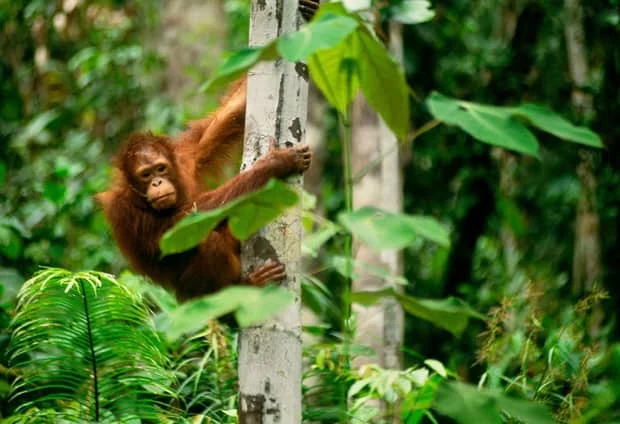 人猿又名红毛猩猩,因憨态可掬的样子被人所喜欢,它是婆罗洲的特产。顺着实蒙谷的小径,我来到了红毛猩猩活动区域的入口。这个保护区是一片面积653平方公里的丛林,20多只大小红毛猩猩生活在这里。它们经常神出鬼没,与游客捉迷藏似地不出来。但今天不同,还没有进入丛林,我便已经近距离看到了它们的身影。这边一只大块头的站在一处铁皮门跟前,对一个垃圾箱产生了兴趣,它伸手进去掏,被管理员厉声呵斥之后才灰溜溜地离开;那边树上一对母子成了游客的焦点,因为猩猩妈妈怀里的宝宝才出生几天,连眼睛都还没睁开。走进丛林,这里更是热闹。七八只猩猩已经上蹿下跳了好一阵子。一只巨大的猩猩端坐中央大吃起管理员每天提供给它们的水果大餐。听导游介绍,它是这里的“老大”,所有猩猩都是其臣民,全听它的调遣。或许因为吃得高兴,他今天心情格外好,对手下也非常宽容。一只母猩猩带着孩子怯生生地从他手下“偷”香蕉,它也只是当作没看见。早就听说,红毛猩猩是有“明星气质”的动物,今天见到发现果然如此,越是看的人多,越是有人照相,它们的表演欲就越强烈。丛林里像剧场一般,每天上演着红毛猩猩的好戏。