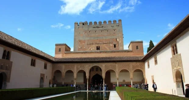 这座宫殿具有浓厚的摩尔文化特点,代表了西班牙摩尔艺术的顶峰。它是由一系列的庭院、天井和房屋组成,里面错综复杂的镶嵌式墙壁和天花板设计使得整个宫殿的布置显得极其豪华。