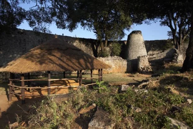 我和西班牙人越过大片的石头墙区域,试图探究它本来的面貌,看着蔓延在山谷间的花冈岩块,我猜想这里可能是当时人们生活和生产的地方,它的规模是三个围栏中面积最大的,当然说明当时聚集的人最多,考古家们在这里发现了制造于13世纪的金属工具,我也搬动石块,看看能有什么惊人的发现,要知道,津巴布韦皂石鸟,就是在这一代的某个角落发现的,如今他是津巴布韦的国宝,这个国家的象征,我在旁边的博物管里看到他的时候,倒是觉得它有些卡颇有好莱坞卡通感。除了石头下溜走的蜥蜴,我什么也没有发现,爬上南面的小山,穿过曲折狭小的石墙通道,山顶的景色豁然开朗,山顶的开阔处,两座巨石下,建有一个石墙圈,墙厚有一米,上面奇怪的每隔几米就插这尖利的石柱,不知道是什么功用,不过把头伸在前面,让风吹开头发,倒是让我联想到古代可能是用来悬挂头颅和战利品的地方。围栏里面弄巧成拙的建立了一个茅草房子,里面空无一物,从高处俯瞰,如果给他加个顶,再和那么曲折的难登的小径联系起来,这里应该是统治者居住的地方。而山谷的另外一侧,有一处保存完好的巨大圆形围栏,也就是所谓的大围栏,气势是最壮观的,直径有100米,石墙高达11米。里面矮墙纵横,犹如迷宫一般,在靠近西边,建造有一座10米高的石塔,烟囱状,我研究了半天,确定这个肯定不是用来做饭的,里面是实心,文献说是纪念物,不过我觉得它实在是不够气派和华丽,具体的公用还有待研究。整个大围栏建造于700年前,是撒哈拉以南最大的人造古迹建筑,这里就像吴哥一样,隐藏在莽莽的南部非洲平原中,一旦重现,彷佛再次带我们回到久远的时代,狩那武士,阿拉伯商人,葡萄牙旅行者,所罗门王和姗巴皇后。